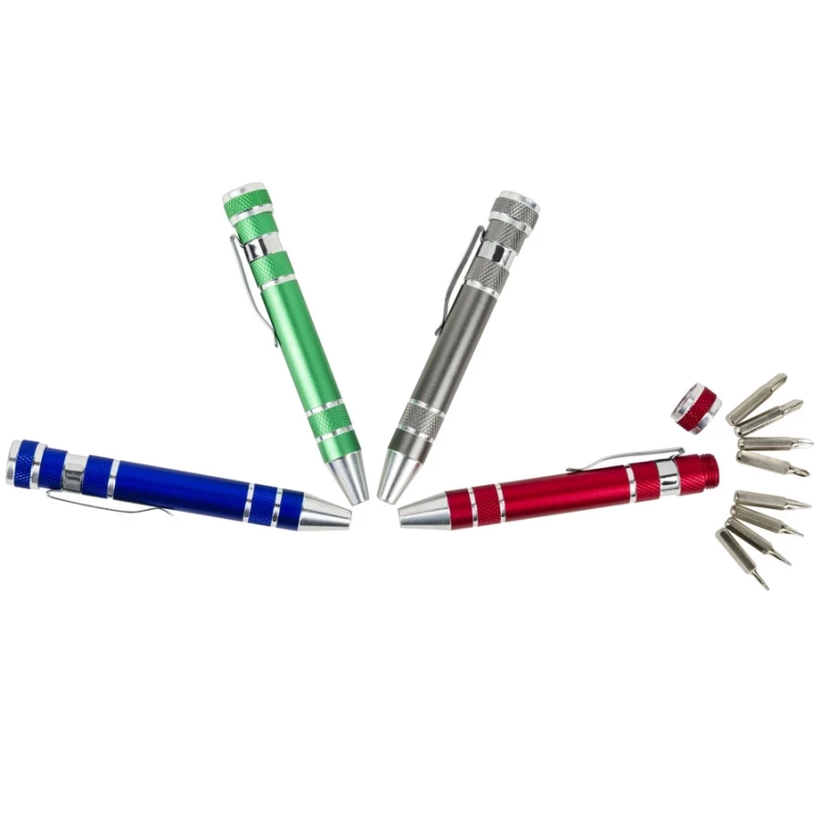 A Tate csavarhúzó egy kicsi, de többfeladatú szerkentyű, amelyet nem csak a lelkes barkácsolók fognak szeretni. Ez a karcsú "toll" formájú, okos segítő akár nyolc cserélhető bitet - négy lapos és négy Phillips - is rejt, így könnyedén megoldhatók a kisebb javítások az otthon, az irodában vagy a műhelyben. Tartós alumíniumból készült, könnyű, praktikus és igazán professzionálisan néz ki. Tökéletes praktikus reklámajándék, amely nem a fiókban végzi, hanem... mindennapi használatra. Az Ön cégének logójával a tokon funkcionális márkahordozóvá válik - ideális vásárokon, promóciós rendezvényeken vagy az ügyfelek ajándékaként.